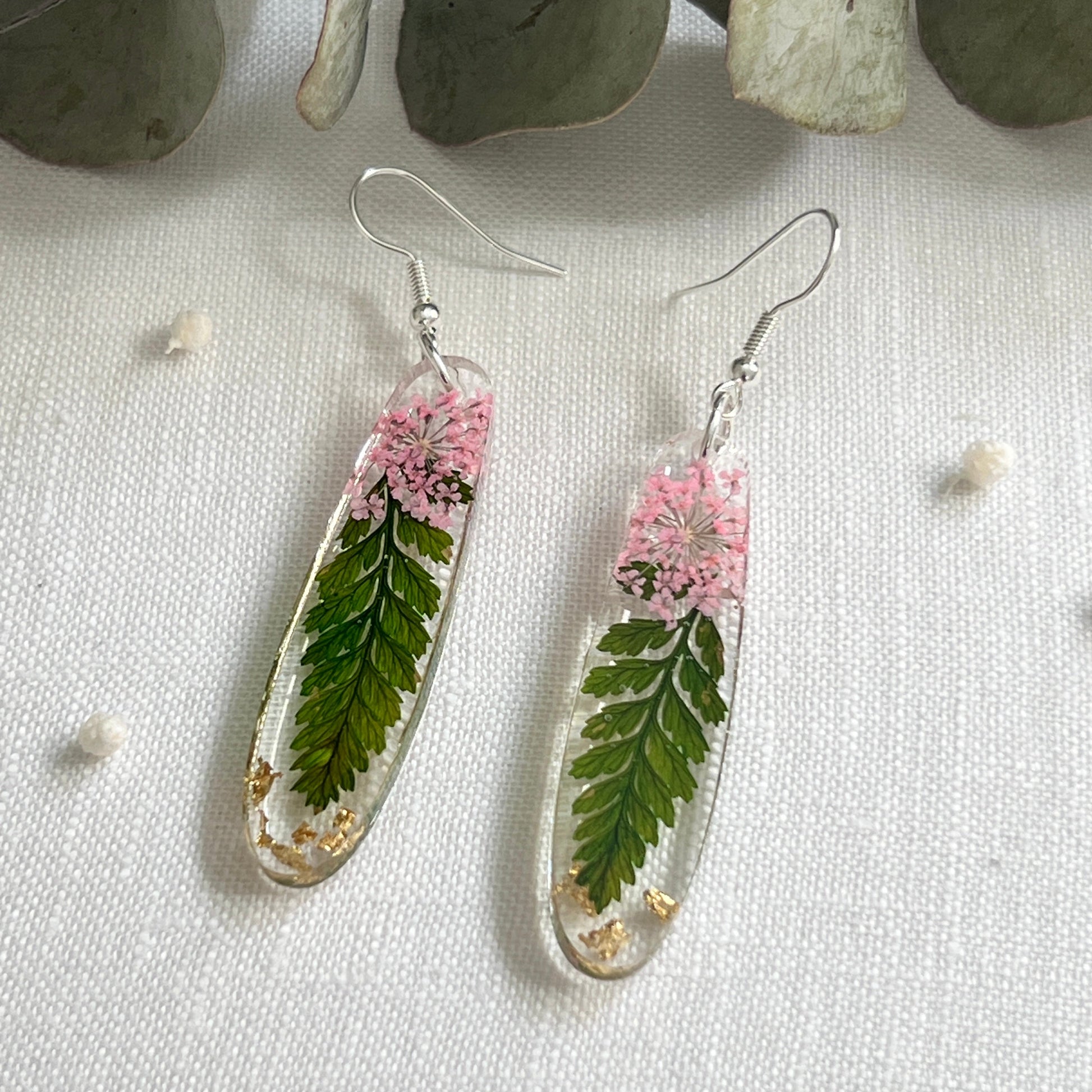 Set in high quality resin, with hypoallergenic plated surgical steel hooks. You will receive the exact item shown.